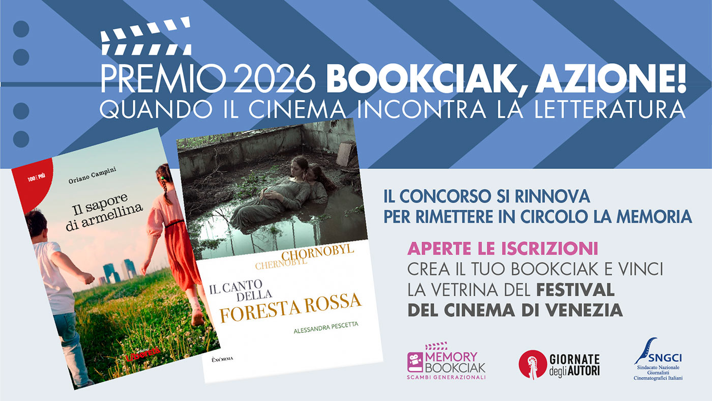 Bookciak, Azione! è l’innovativo concorso cine-letterario che trasforma in bookciak, corti sperimentali di max tre minuti, i libri di autori italiani premiati da Bookciak Legge, concorso nel concorso che favorisce l’incontro fra cinema ed editori indipendenti. Bookciak, Azione! è l’evento di pre-apertura delle Giornate degli Autori veneziane dove vengono premiati i bookciak vincitori e poi accompagnati in tour attraverso festival nazionali e internazionali. La partecipazione è gratuita e aperta ai giovani filmmaker entro i 35 anni.