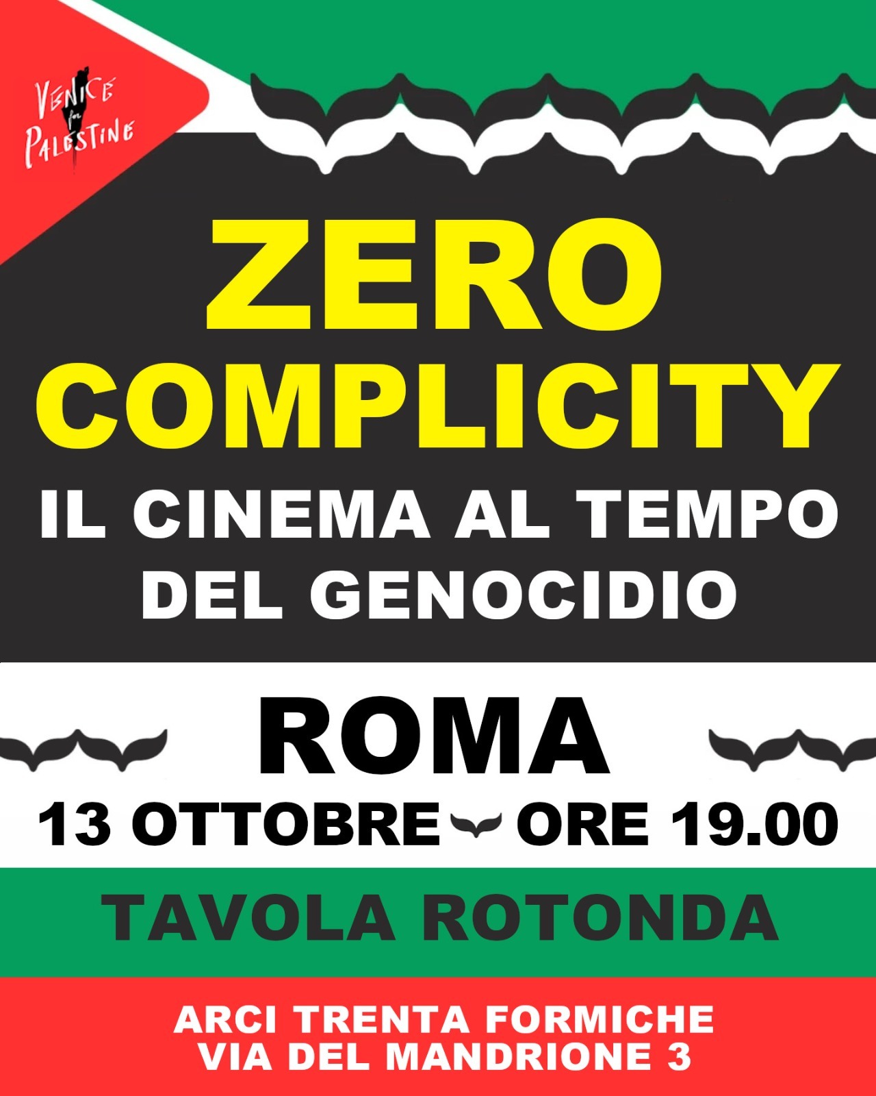 “Zero Complicity”. Assemblea pubblica del mondo del cinema il 13 ottobre a Roma